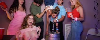 The college party games go from mid to wild when Violet Ray’s bestie dares her to blow the whole football team, and this dark-chaired college slut is up to the challenge.